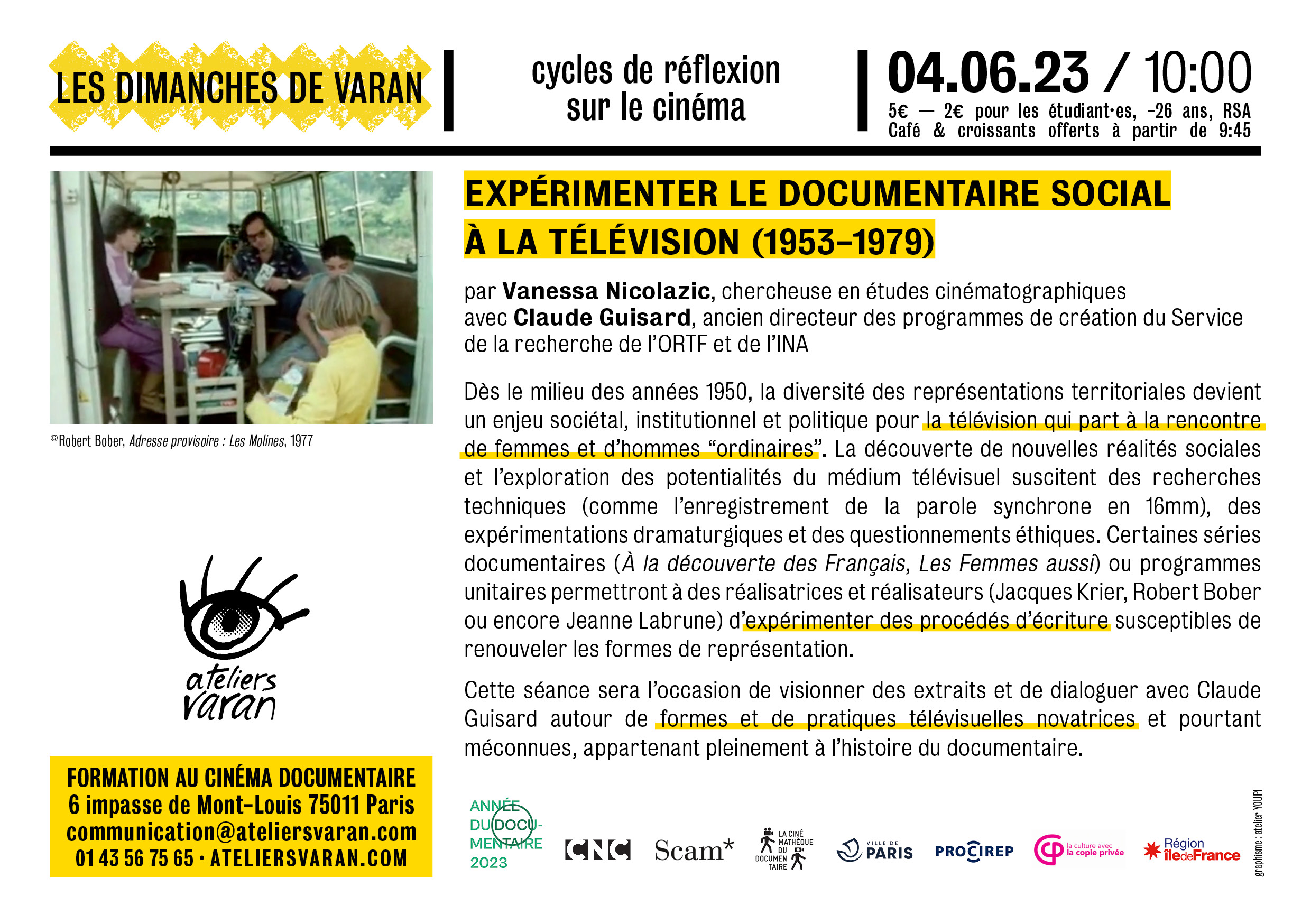 Cette séance sera l’occasion de visionner des extraits et de dialoguer avec Claude Guisard autour de formes et de pratiques télévisuelles novatrices et pourtant méconnues, appartenant pleinement à l’histoire du documentaire.