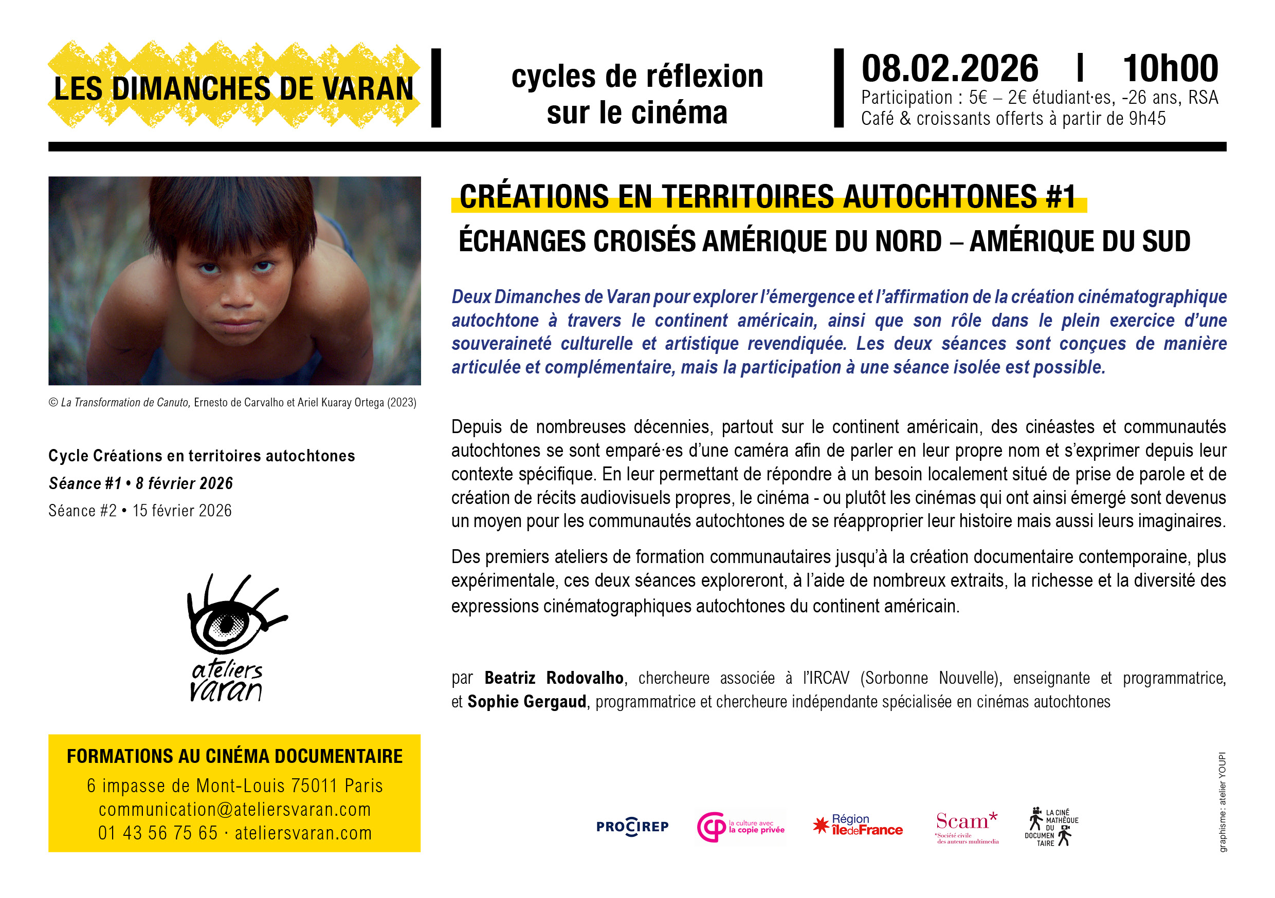 Deux Dimanches de Varan pour explorer l’émergence et l’affirmation de la création cinématographique autochtone à travers le continent américain, ainsi que son rôle dans le plein exercice d’une souveraineté culturelle et artistique revendiquée. Les deux séances sont conçues de manière articulée et complémentaire, mais la participation à une séance isolée est possible.