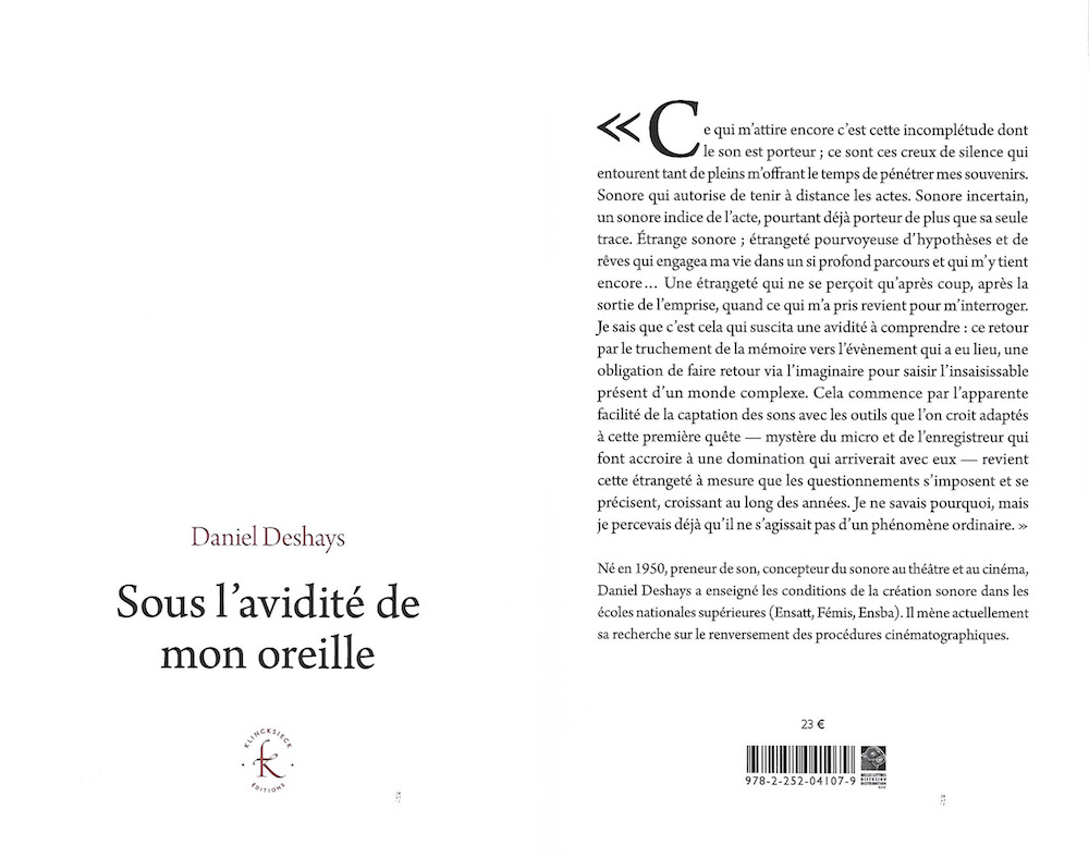 Dans cet ouvrage, le parcours de Daniel Deshays depuis les années 1970, concepteur sonore au théâtre, au cinéma et en musique.
