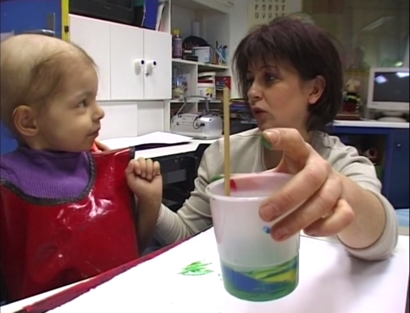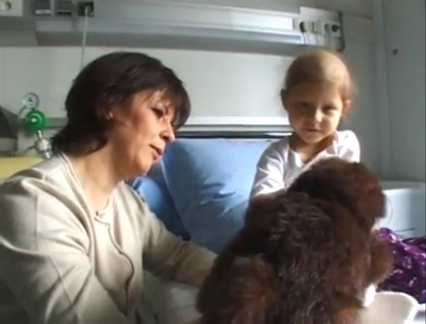 Dans le service pédiatrique de l'Institut Gustave Roussy de Villejuif, Fabienne, éducatrice, tente de préserver un espace pour l'enfance.
