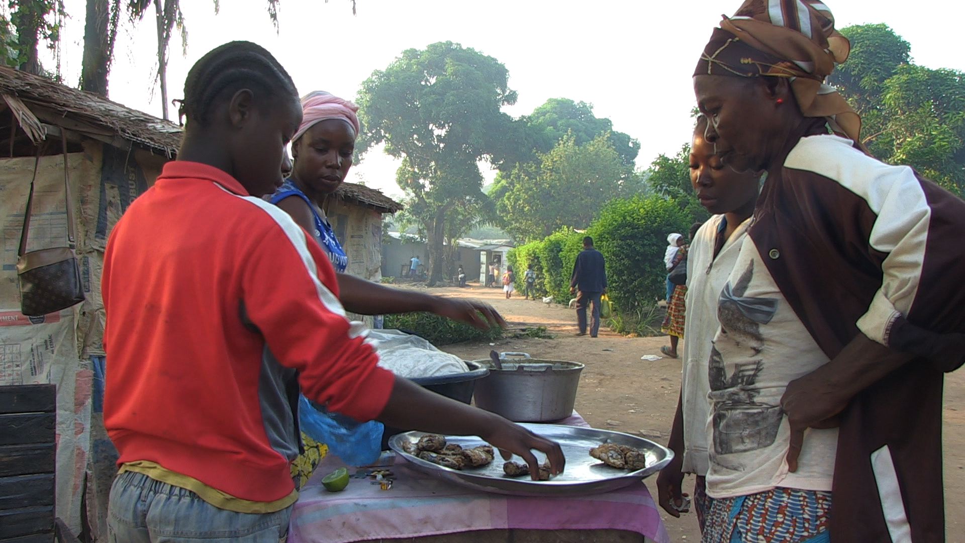 À Bimbo, dans la périphérie de Bangui, des femmes se sont réunies dans une association qui pratique le micro-crédit. L'une vend du café, l'autre de l'alcool, une autre du poisson. Avec leurs petits commerces, elles nourrissent leurs familles, car il est loin le temps où les hommes subvenaient seuls aux besoins de leur foyer. Désormais, pour les femmes, il n'y a pas le choix : il faut se battre.