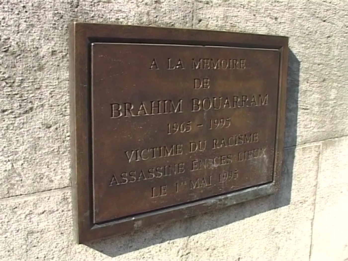 Sur le pont du Carrousel à Paris, une plaque commémorative est apposée : "A la mémoire de Brahim Bouarram 1965 - 1995 Victime du racisme Assassiné en ces lieux Le 1er mai 1995". Six lignes pour se souvenir.