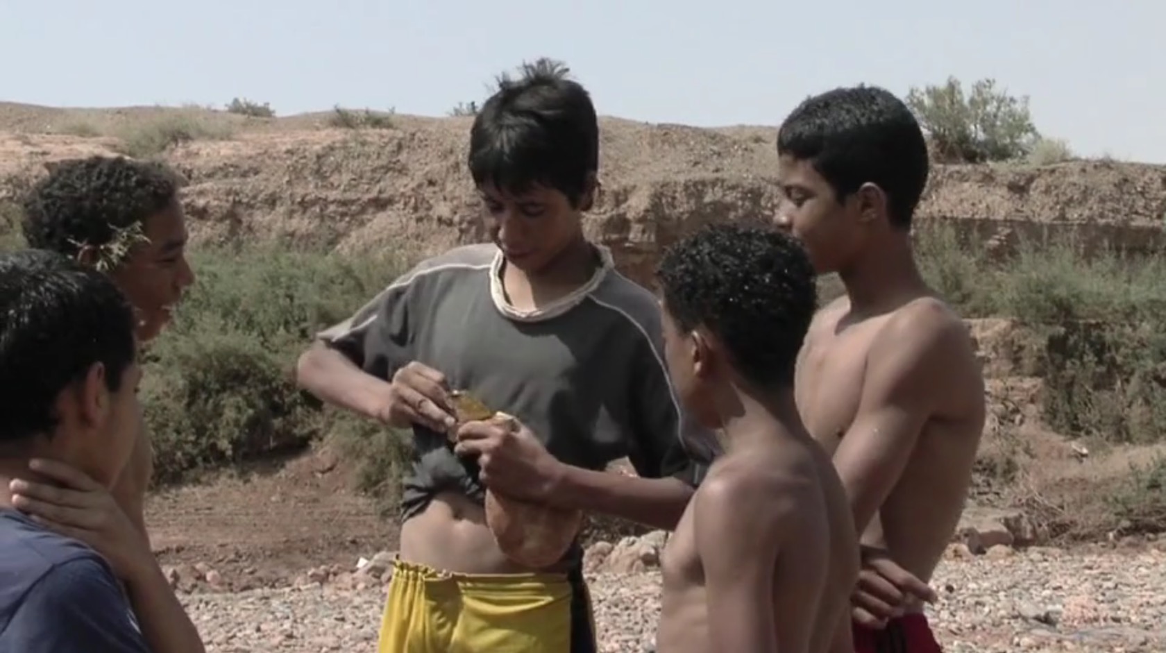 Aux environs de Marrakech, de jeunes Marocains passent l'après-midi dans ce qu'il reste d'un étang. Ce lieu, d'apparence pourtant peu accueillante et interdit par les autorités, fait office d'aire de jeu pour ces garçons. Ils s'y baignent, y jouent, partagent un repas ou fument avant de rentrer chez eux le soir.