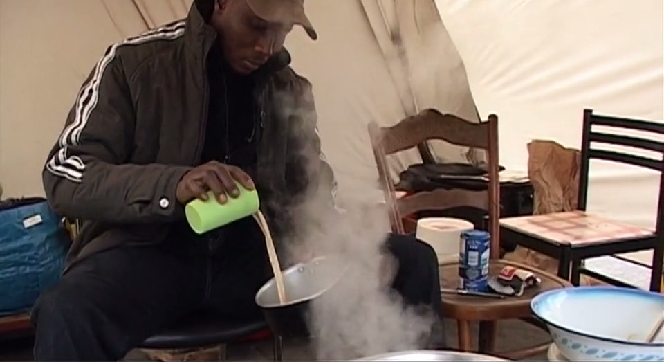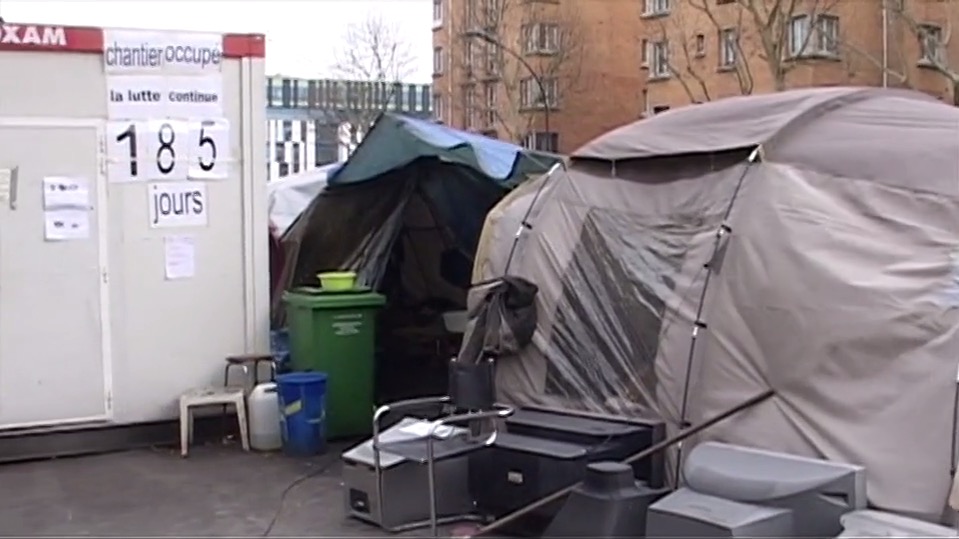 Le 12 octobre 2009 en Île-de-France, 6000 travailleurs sans papiers, soutenus par plusieurs syndicats, ont entamé un mouvement de grève afin d’obtenir leur régularisation. Sur le chantier du tramway T3a, au carrefour de la Porte de Lilas, 25 ouvriers maliens, employés de ce chantier, ont posé leurs tentes et tiennent le siège jour après jour. avec le soutien de quelques habitants. Mamadi, Balla, Ibrahim, Sadio et les autres résistent, obstinément. Aller chercher de l’eau à la canalisation la plus proche, balayer, faire du feu, cuisiner, partager les repas avec les visiteurs de passage : dans l’espace clos du piquet, au milieu du vacarme de la circulation et des travaux, s’invente un quotidien à la fois âpre et chaleureux.