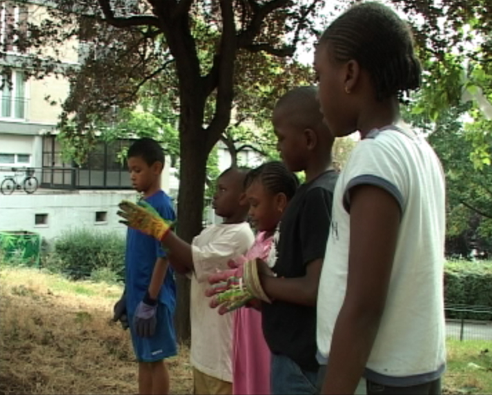 Au cœur de la cité Joseph Python dans le XXème arrondissement de Paris, à la frontière entre la petite couronne et le boulevard périphérique, une femme fait découvrir à un groupe d'enfants comment s'approprier un petit bout de terre, un îlot au milieu du béton.