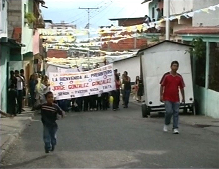Comment apparaît la politique nationale dans un quartier populaire de Mérida, au Venezuela ? Des histoires de famille se mêlent à des histoires d'engagement politique, on parle de Bolivar et de Chavez. Ici, un événement religieux se prépare, un enfant du quartier s'apprête à en devenir le prêtre.