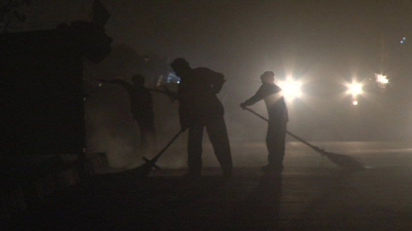 Ombres parmi les ombres, les balayeurs de nuit de Kaboul déplacent une lourde poussière le long d'une avenue. Images arrachées à la poussière et à la nuit, dans les phares des voitures, à la lueur d'une boutique ou d'une pompe à essence.