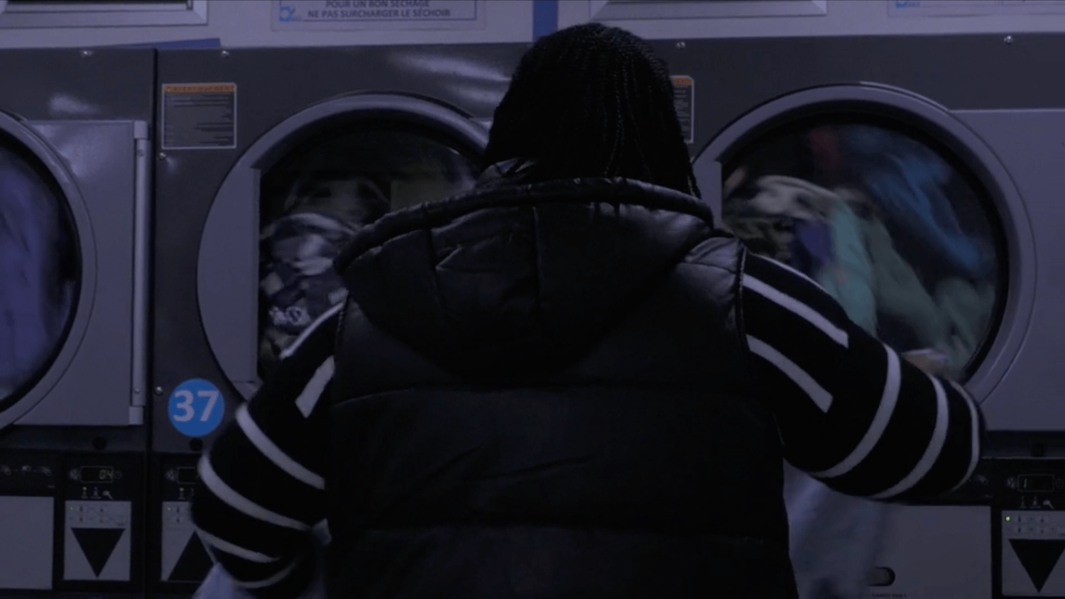 Insérer la pièce, sélectionner le programme, appuyer sur le bouton de démarrage et attendre : zoom in sur la vie d'une laverie en banlieue parisienne.
