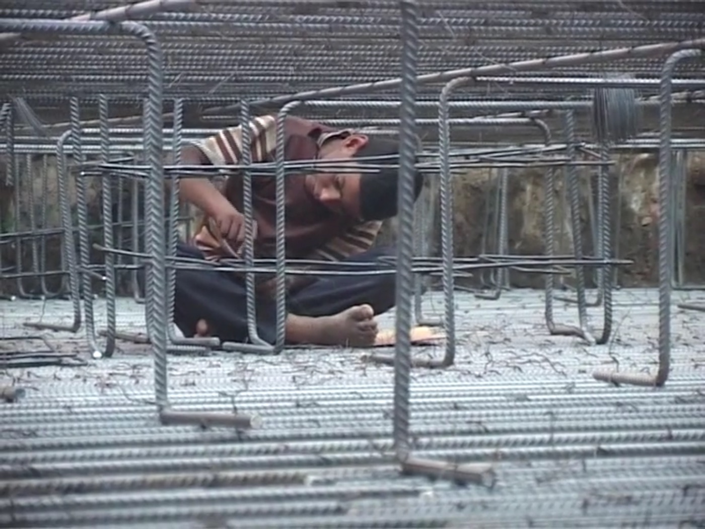 Mina, 13 ans, traverse la ville pour rejoindre son univers quotidien. Apprenti sur un chantier, il rampe et se contorsionne, enfermé dans l'armature en fer qu'il construit.