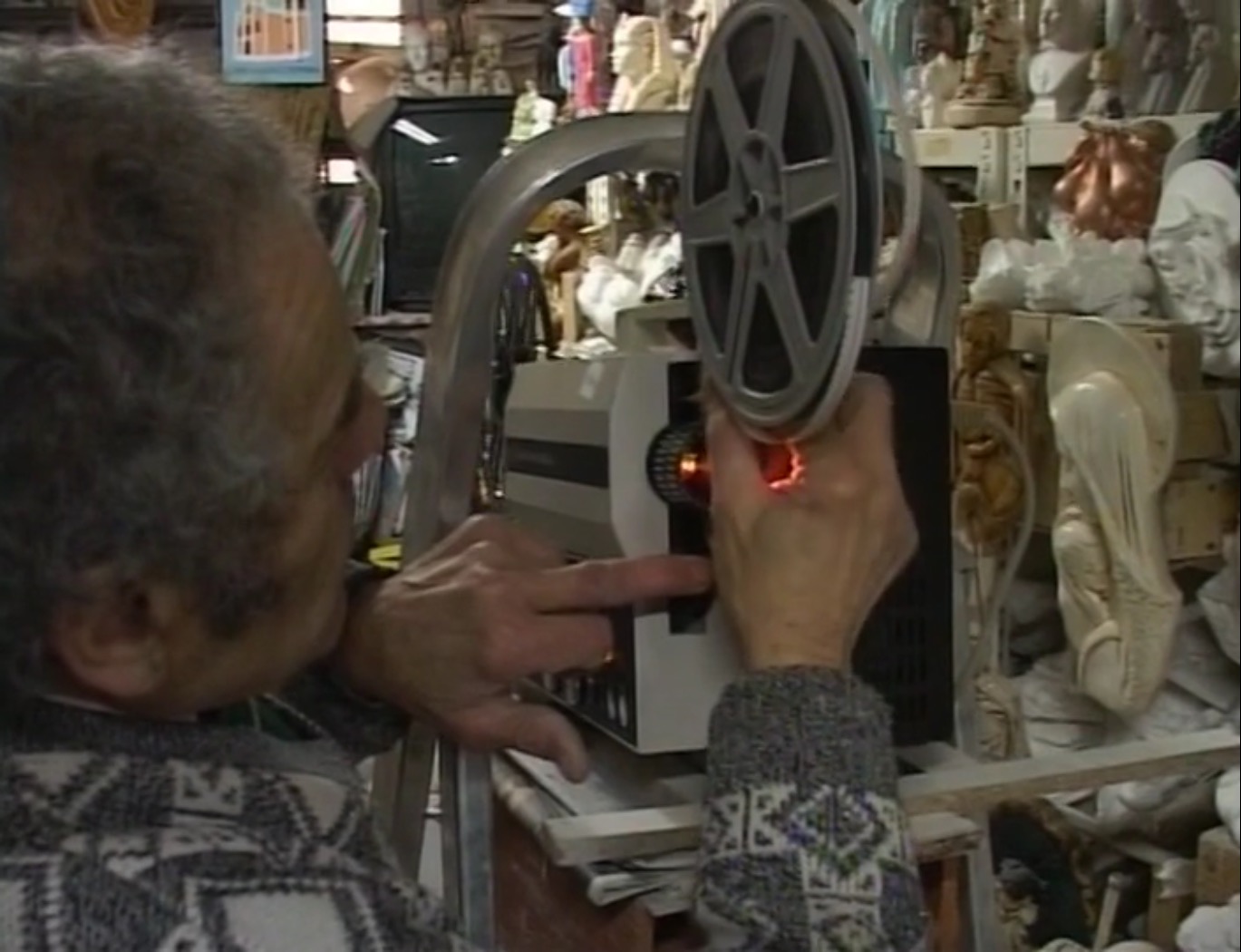 Le temps ne s’est pas arrêté dans l’étrange atelier de Monsieur Acácio Pina Coelho, il continue de jouer aux cartes avec ses amis et de vendre ses sculptures et ses moulages. Pourtant, il est nostalgique, il aime raconter son passé, sa vie avant le 25 avril 1974, jour de la Révolution des œillets. Cet atelier, c'est aussi la boîte à souvenirs d'un temps révolu.